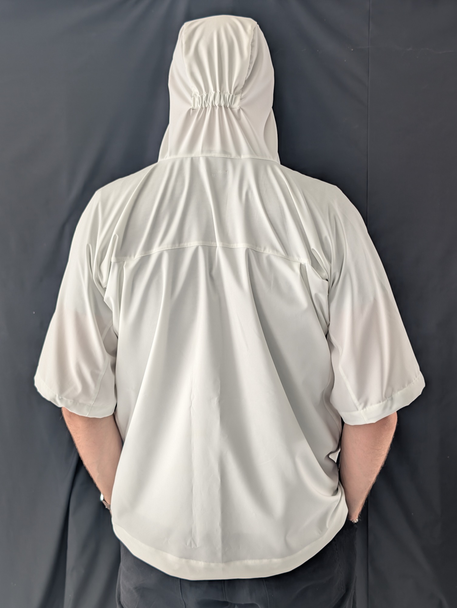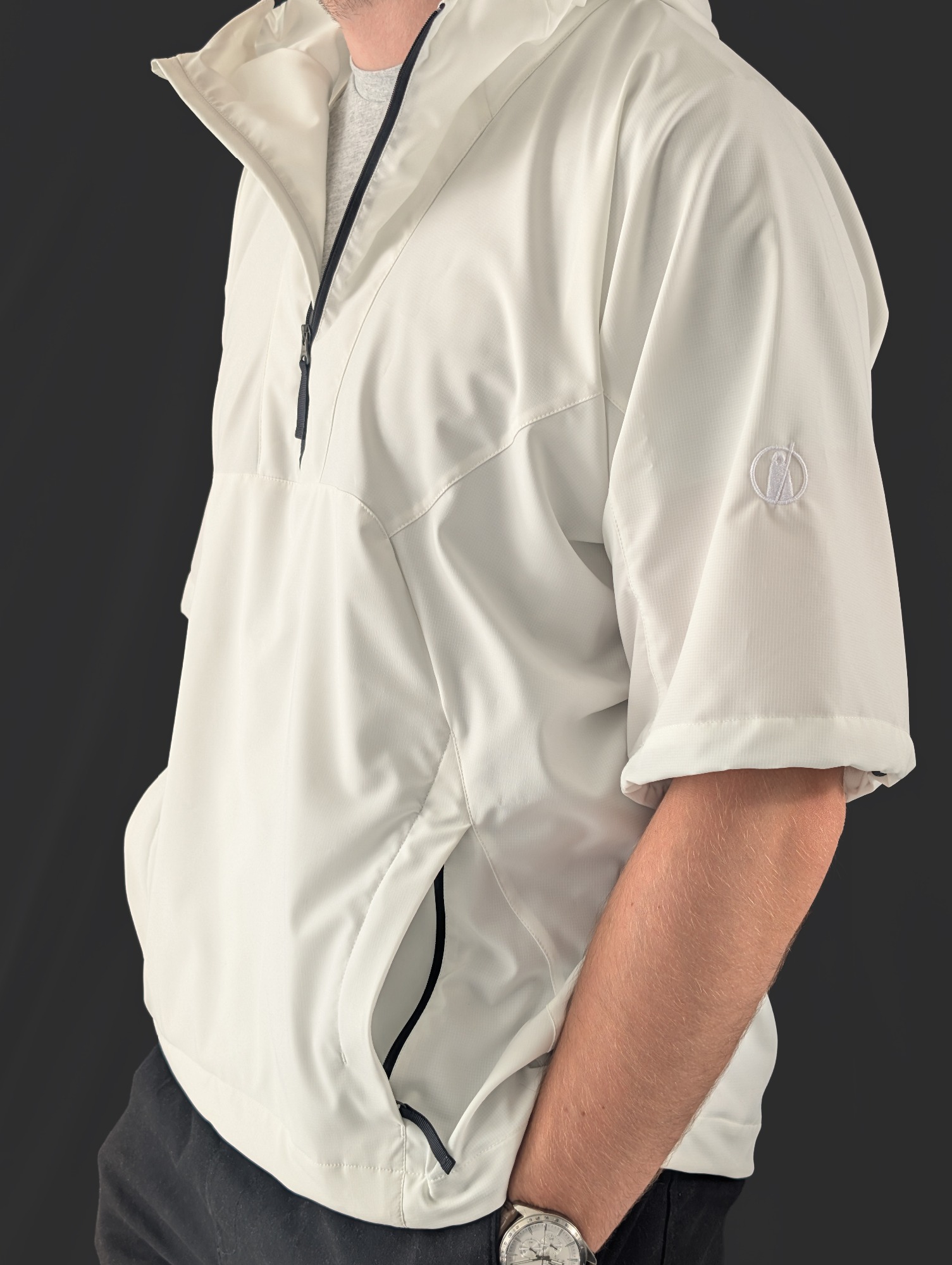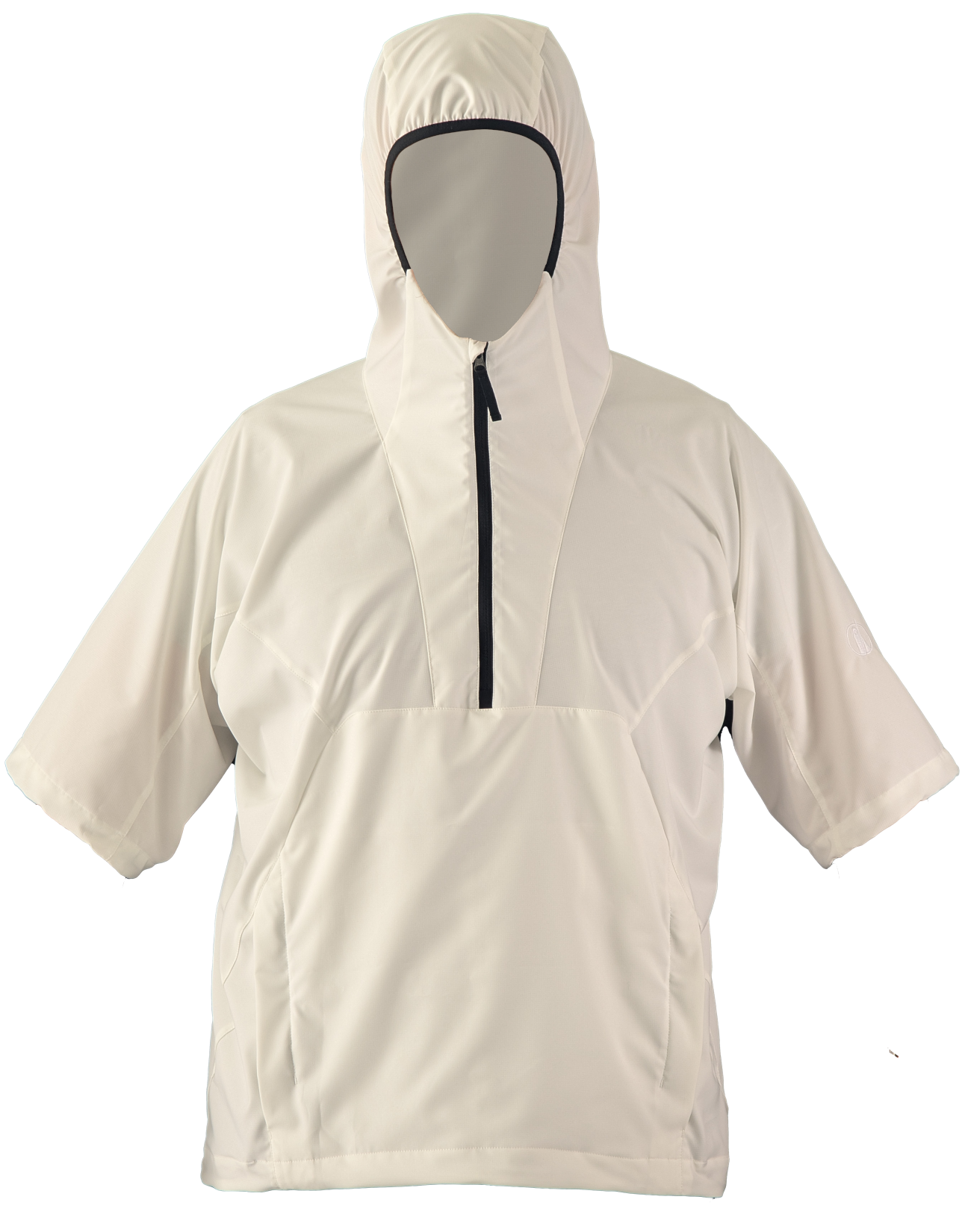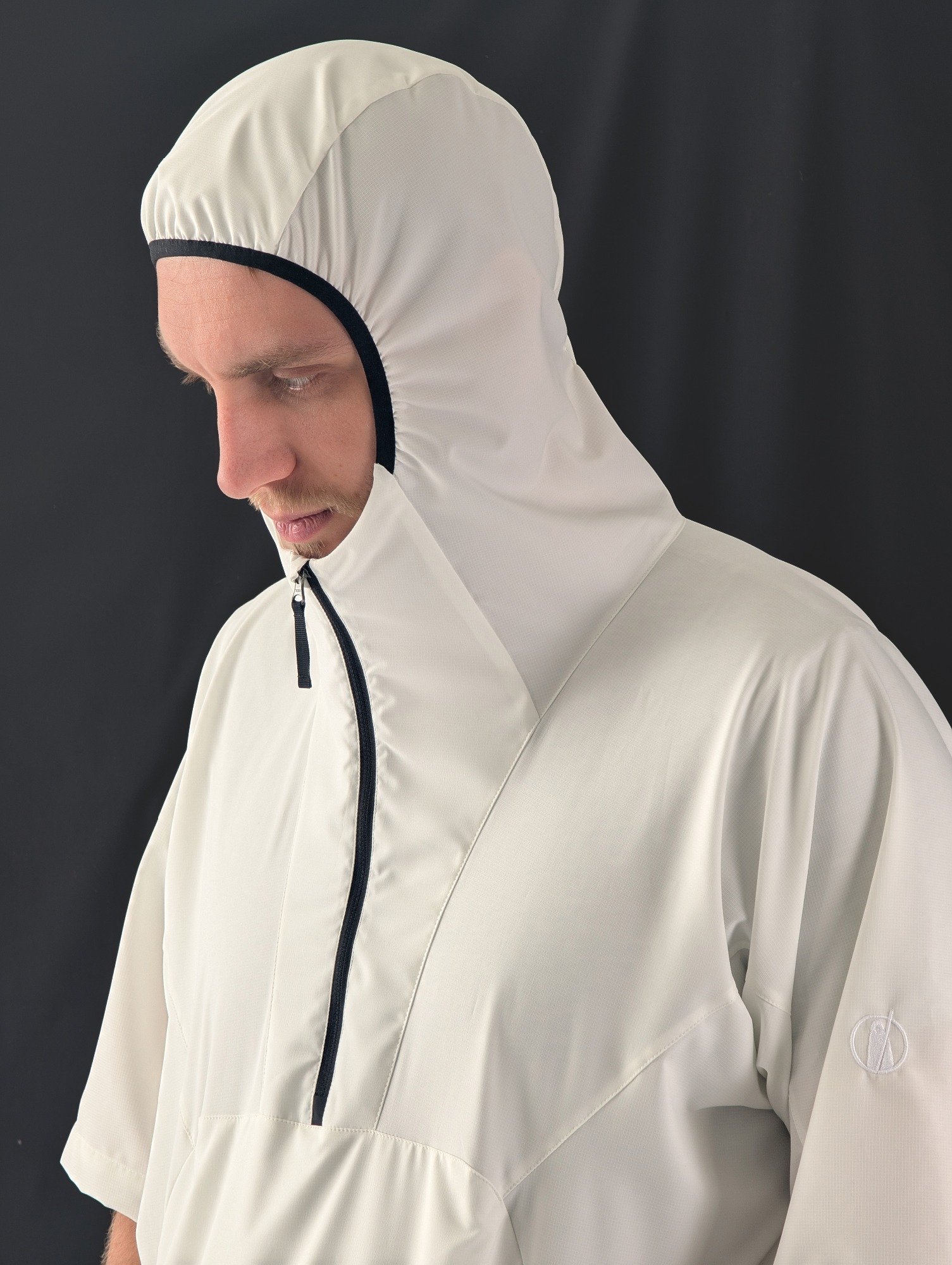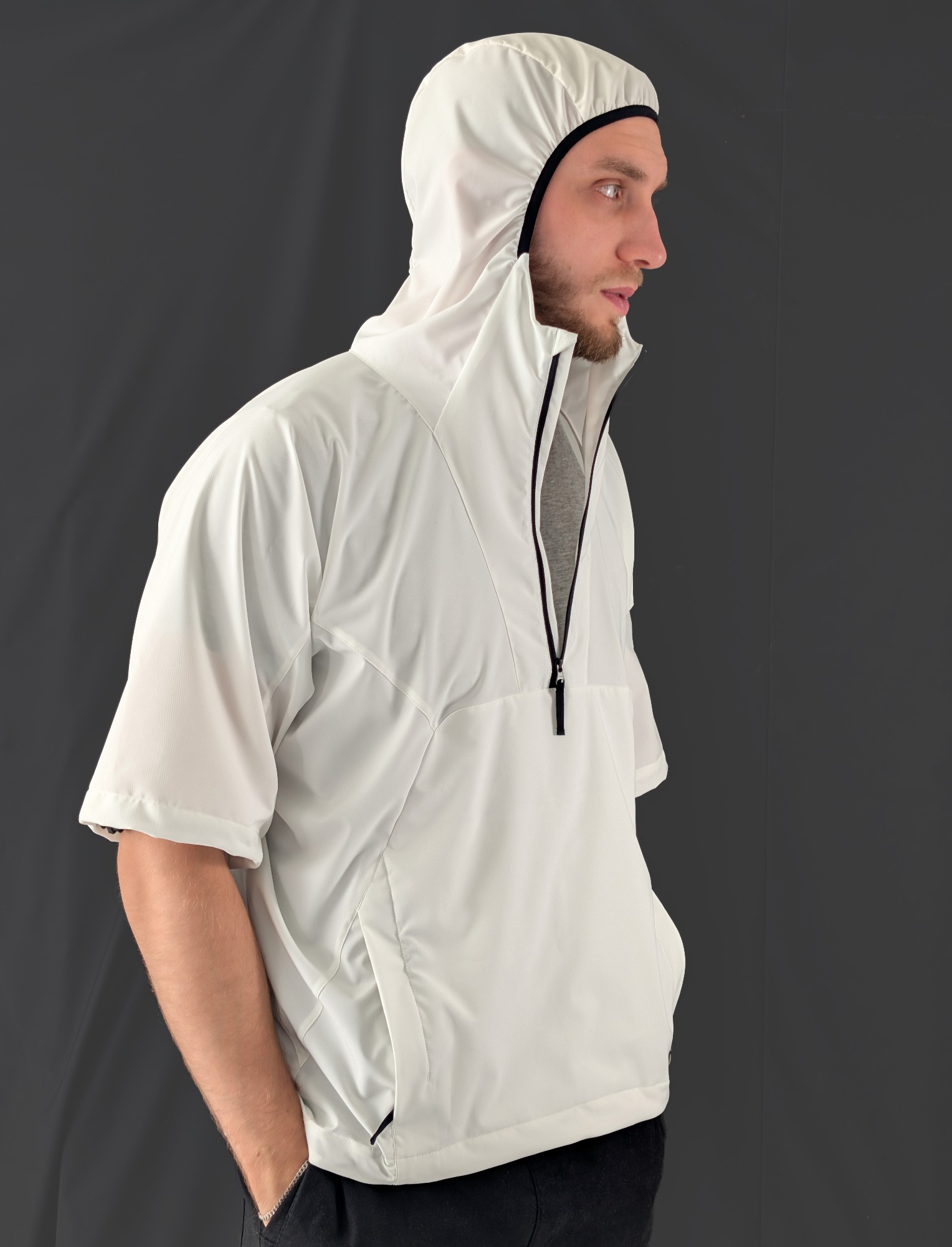 Short sleeve anorak made of UV protective (UPF 40) fabric that makes hot days in the sun a breeze. The design promotes free air flow and delivers high wearing comfort. Anatomic hood with elastic brim is easily adjustable with one hand and achieves ideal fit. Short sleeves come with draw cords, just like the hem at the hips. There are two spacious zippered pockets at the waist. The entire anorak can be packed inside the left pocket (also contains a loop).